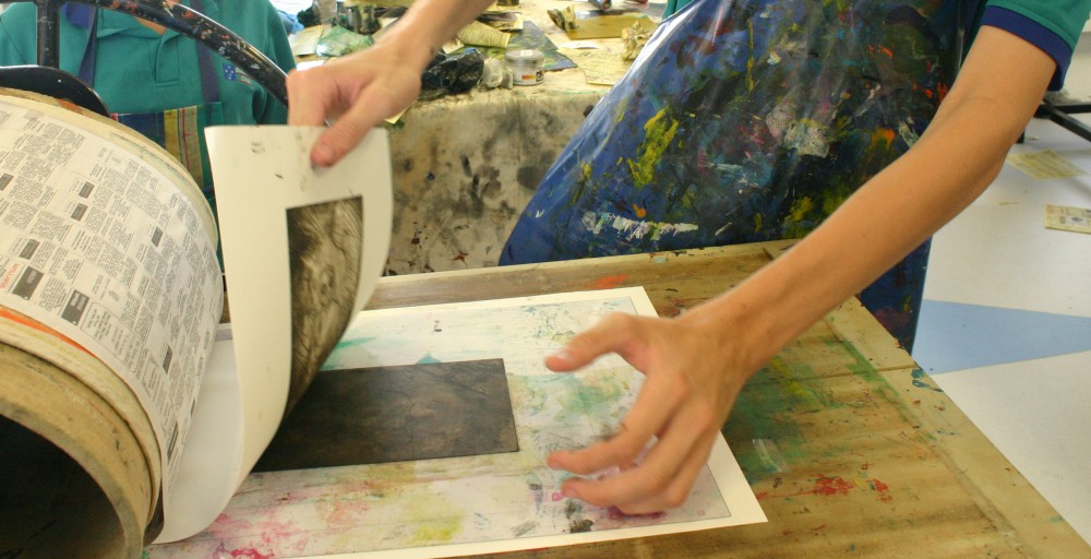 inking up the drypoint plates