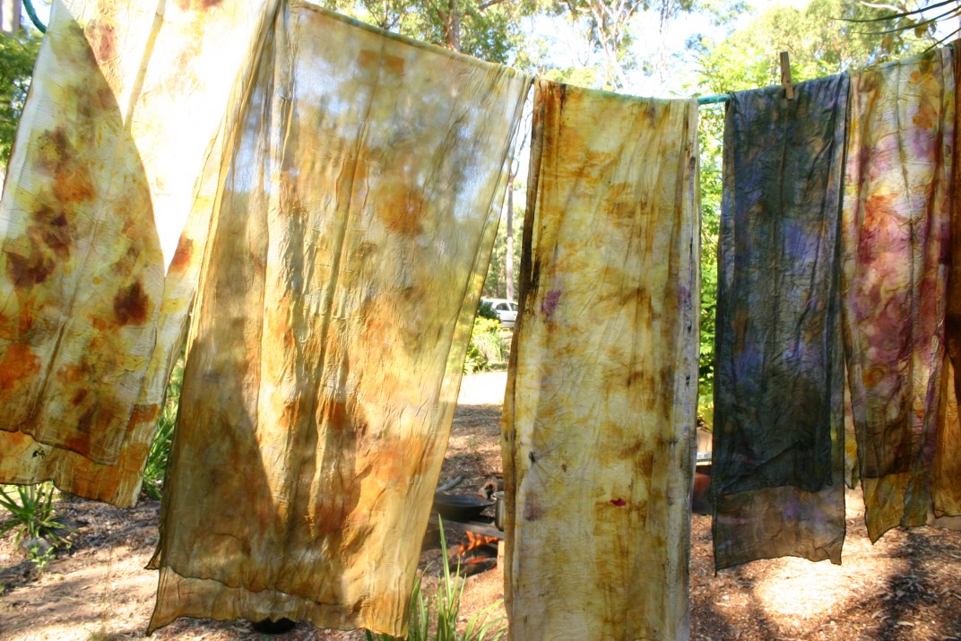 plant dyed scarves in sun