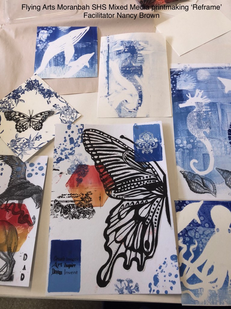 Some photos from Flying Arts tour to Moranbah to facilitate a mixed media and printmaking workshop responding to ‘Reframe’ a Flying Arts touring exhibition
