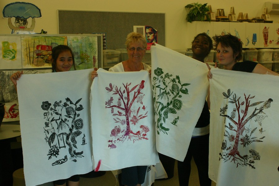 Tree of life print, teachers and students workshop Logan Regional Art Gallery